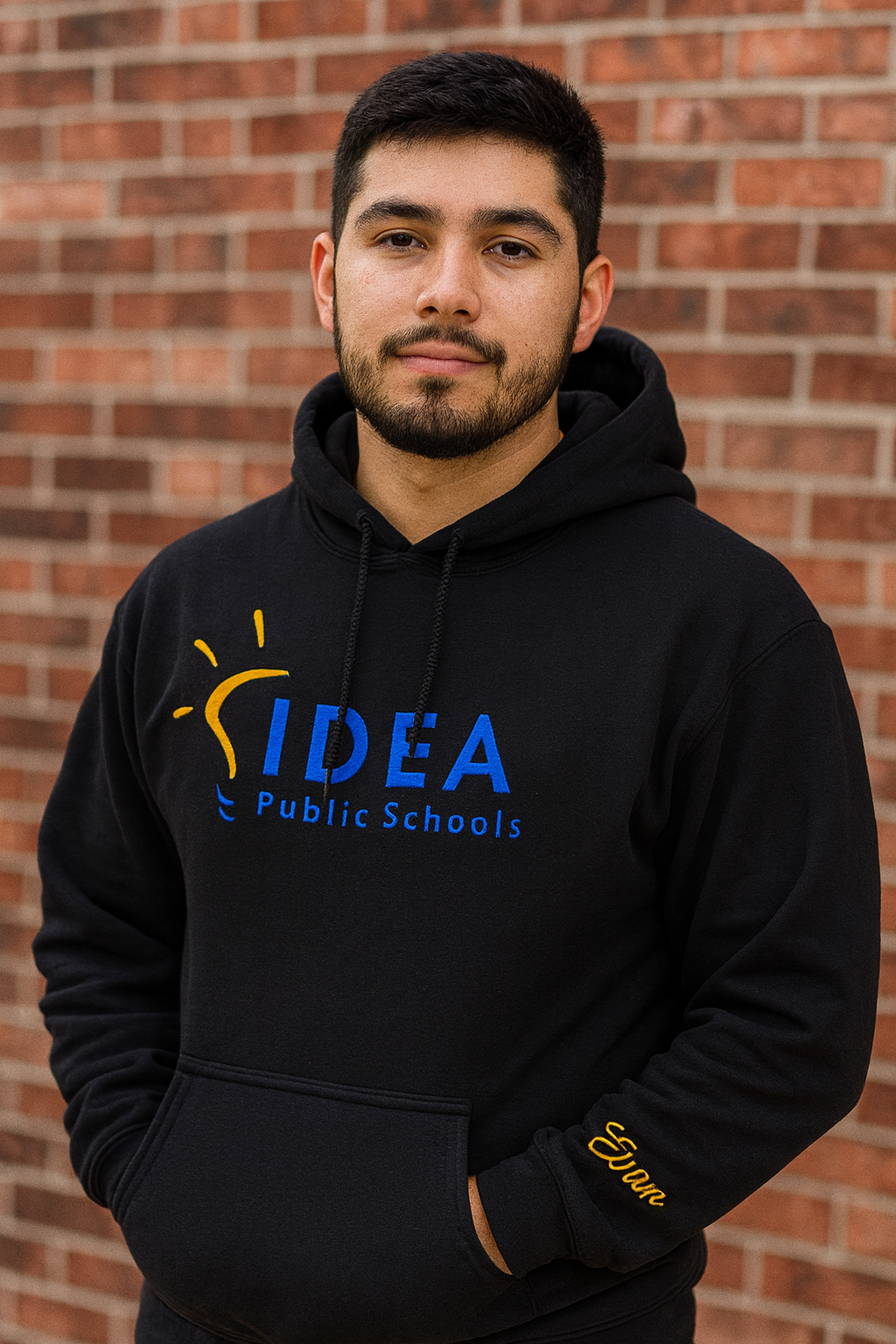 Crafted from a premium cotton, these hoodies offer soft warmth, lasting durability, and easy care—perfect for cool classrooms or outdoor events. The bold IDEA logo stands front and center, representing unity, ambition, and excellence.