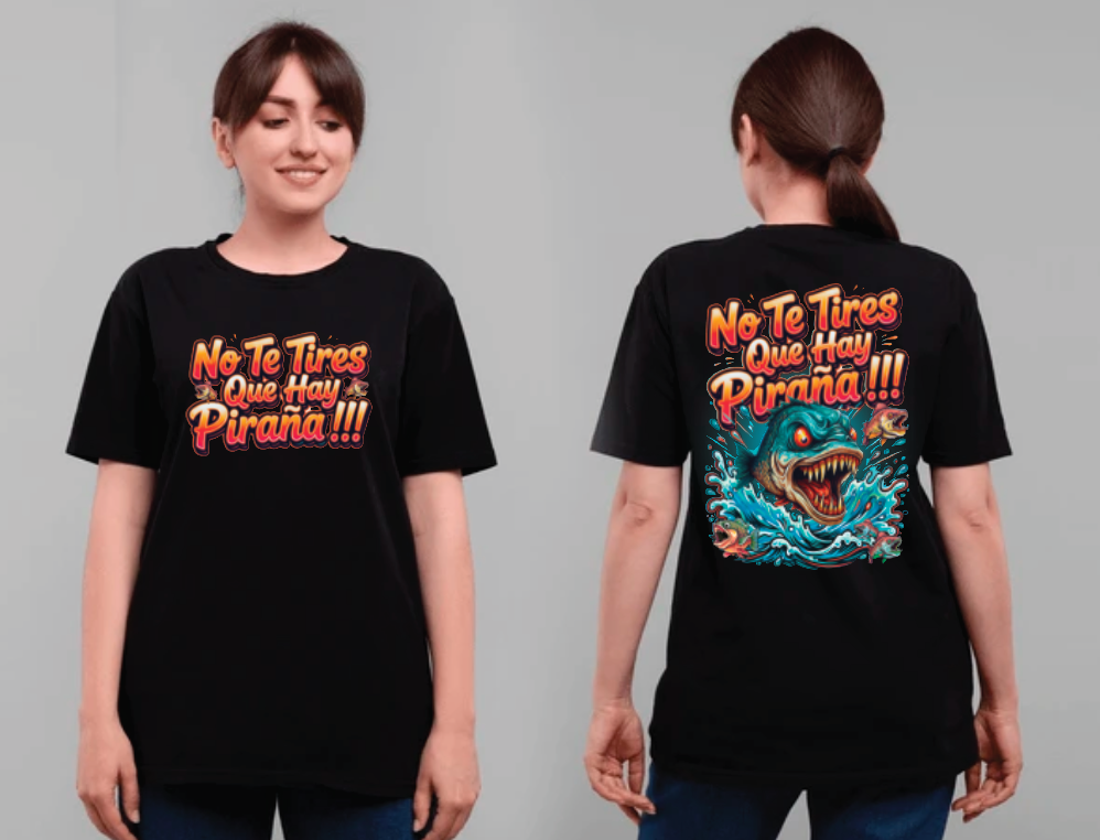 With its eye-catching design and iconic phrase, "No se Tiren Que Hay Piraña," this shirt is a must-have for fans of reggaeton, dembow, and all things Latin culture. Wear it with pride and represent the unstoppable energy of the Caribbean!